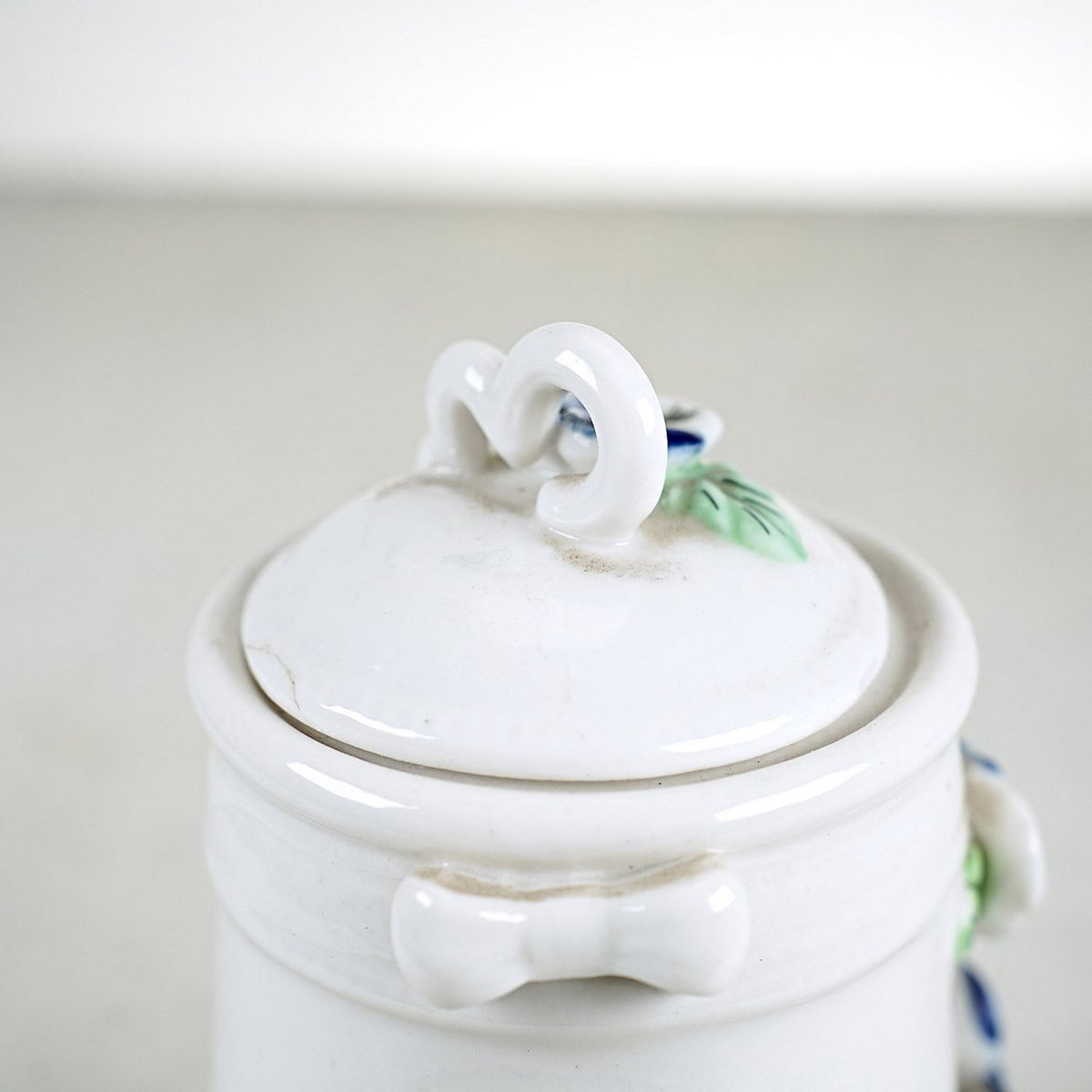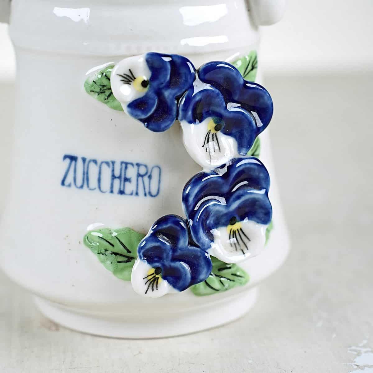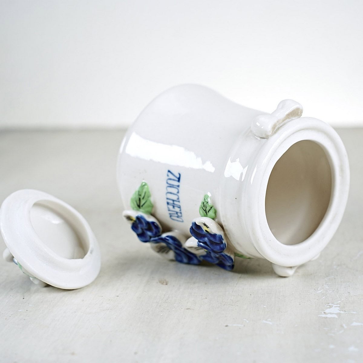zuccheriera in ceramica con decori floreali in rilievo